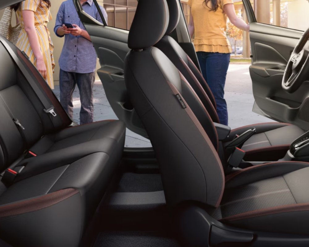 Inside, the Versa offers a spacious cabin with seating for up to five passengers. Front occupants enjoy ample legroom, while the rear seats provide comfortable accommodations for adults. The trunk offers up to 425 litres of cargo space, suitable for groceries, luggage, or recreational equipment. For added versatility, the SV and SR trims feature 60/40-split fold-down rear seat-backs, allowing for the transport of longer items while still accommodating passengers.